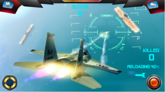 以3D建模构建全动态空域,战机模型精度达毫米级细节,支持昼夜交替与云层穿透效果。核心玩法围绕航母防御展开,玩家需在限定时间内识别敌我信号、预判攻击轨迹并实施精准拦截,射击反馈具备弹道下坠与风偏修正机制,提升实战拟真度。
