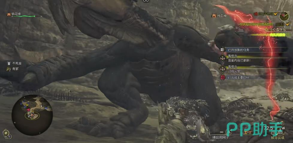 应对策略上,推荐优先选用火属性武器。该属性不仅能有效克制毒怪鸟的生物特性,还可显著缓解中毒状态带来的负面效果持续时间。实战中建议携带足量音爆弹,利用其强制僵直效果打断其冲锋或喷毒前摇;配合落穴陷阱或麻痹陷阱,可大幅限制其机动性,为输出创造安全窗口。此外,解毒药为必备消耗品,建议随身携带3瓶以上,确保中毒触发后能第一时间净化状态、恢复战力。