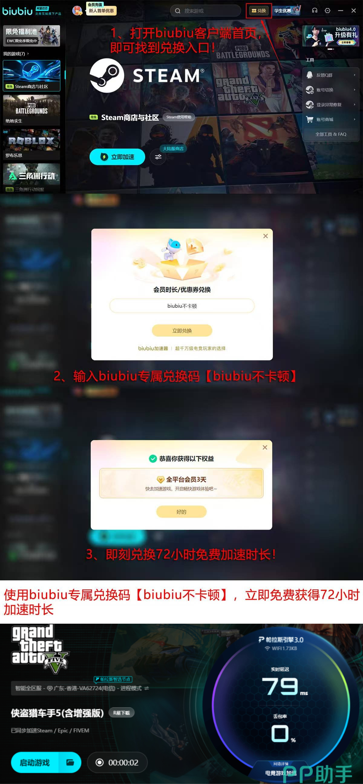 升级版biubiu的效率和加速能力得到了质的飞跃,为了让更多的玩家零成本体验到它的好效果,新用户注册即送专属加速24小时,而且还有输入专属口令【biubiu不卡顿】就能获得72小时的高强度体验时长,双份福利叠加起来就是新人可以畅享96小时的优质加速体验。