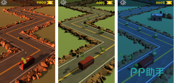 不同类型的车子应有尽有,比如有大型的公交车或者是驱动力非常强的越野车等等,需驾驶着车子穿梭在不同的赛道当中,当遇到急转弯时,就需要控制好车速,每条赛道上都会有大量的金币,需要大家来收集,左右滑动屏幕控制车辆正确运行。