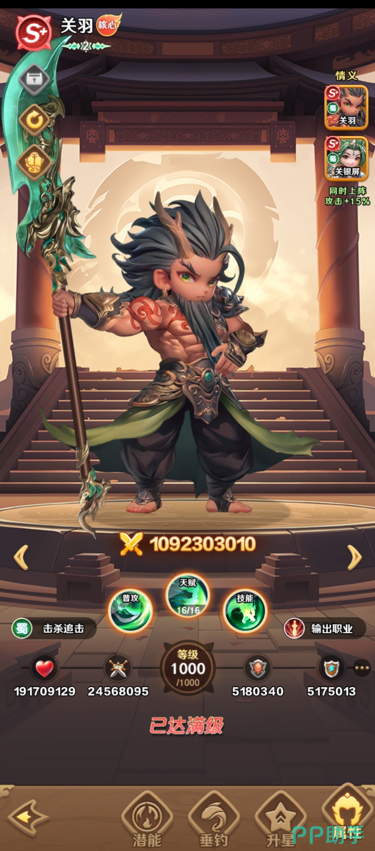 关羽定位为高压制单体爆发型战士。其普攻可消耗自身10%最大生命值,对目标造成额外伤害,并附带“禁怒”效果,使敌方单位无法积攒怒气值。当天赋强化后,其追击技能触发频率与伤害倍率显著提升。实战中,关羽不仅能精准打断关键技能释放节奏,更依托击杀回血与高频追击机制,在中后期持久战中维持稳定输出压强,是攻坚高难副本与PVP先手压制的首选核心。