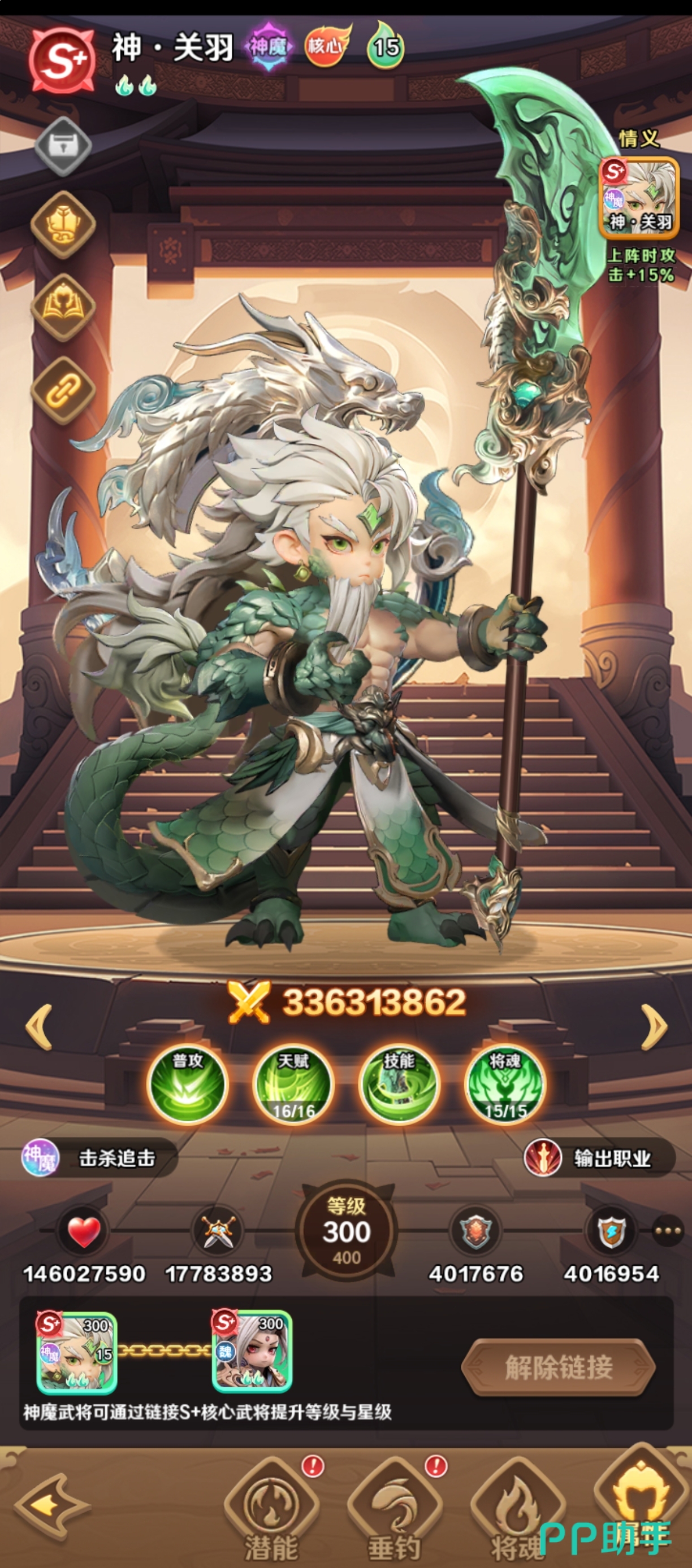 神关羽承担主力输出职责,单体爆发与群体清图能力兼备。与诸葛亮协同作战时,可激活增益叠加链路,大幅提升清关效率;若进一步搭配刘备、赵云,三者间可形成“增伤—承伤—续航”的闭环循环,使神关羽的持续输出能力获得质变提升,适用于日常推图、资源副本及限时活动等高频使用场景。