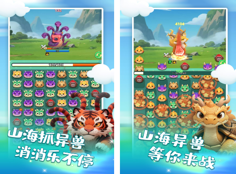 里面有山海经的各种异兽,通过简单的三消玩法就可以进行抓捕,在玩法上比较简单,而且单手就能操作,在里面会显示出各种颜色炫酷的异兽,通过点击三个或以上的数量以后,就能消除。不仅在玩的时候不需要连接网络,也没有无尽的日常,甚至是繁琐的养成,可以很快的加入游戏的世界里面,通过策略以及操作完成消除挑战。