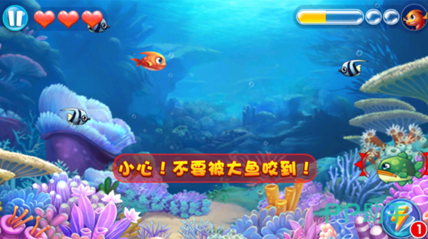 这款《大鱼吃小鱼》游戏扮演了野心勃勃的海洋霸主,就要不断的吞噬比自己小的生物,才能够让自己变得更加强大,随着体型不断的增长,也有更多的机会去挑战一些巨型的人类,当然在游戏当中还有很多的道具是可以帮助大家。通关的整体海洋的场景也是相当有意思的,在探索和征服的过程中也很有快感。
