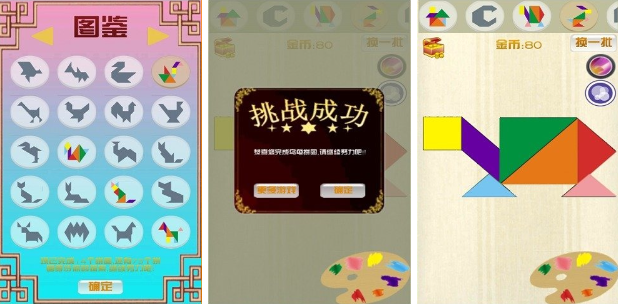 这款七巧板主题的高互动性解谜游戏突破传统,并非纯粹拼图和七巧板玩法的内容塑造也很新奇,五颜六色的七巧板道具可以拼凑成不同的造型,游戏操作设定十分简单足以帮助小朋友快快掌握,考验空间思维的七巧板互动机制也是本作的特色,后续也有很多挑战性十足的模式会加入其中,超好玩的七巧板互动理念吸引了更多宝宝。