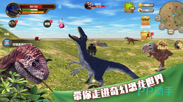 模拟了一个极为真实的恐龙世界,所有的恐龙都有着专属的特殊技能,在面对强悍的敌人时,也可以发挥出他们的暴击力。这片荒野上将会出现无数的强大对手,只有将恐龙不断的进化和升级才能够不断的讨伐,更好的生存下去。还原了曾经那个恐龙时代,恐龙的外观和颜色的设计上和环境都达到了10分呼应的效果。