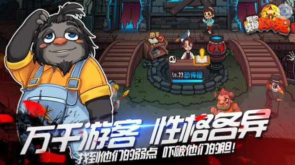 作为一款2d画风的鬼屋主题手游,在玩法上特别有新意,还融入了diy塔防卡牌这种趣味模式。在游戏中玩家的身份会变成鬼屋的老板,核心的任务就是招待来这里探险的游客,这些游客的性格各有差异。老板需要设计惊吓的环节把他们吓晕,让他们真实的感受到恐惧,这样才能满足他们对于鬼屋神秘氛围的探索欲。游戏中还有各种长相诡异的鬼怪,玩家可以通过收集和培养,体验到更刺激感的游戏过程。