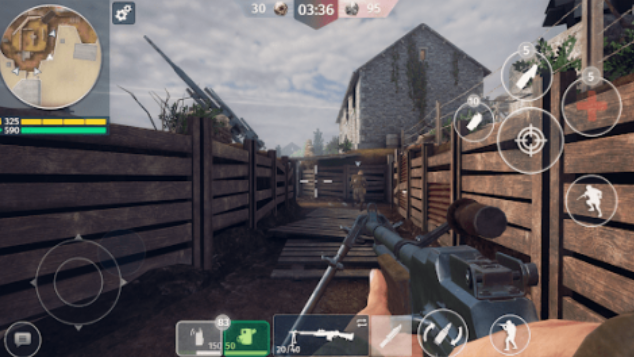本作是二战手游粉丝比较喜欢玩的TTK军事射击类APP,玩家扮演的二战士兵会在战壕中与对手短兵相接,5V5的公平枪战概念配以恢弘战场可玩性更高,战略任务也很多带来的趣味性也是与众不同,玩家可以尝试占点或者使用迫击炮等道具进行辅助,利用FPS视角进入二战时代战场中厮杀乱斗可玩性更高。