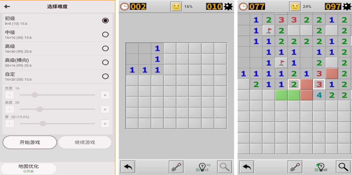 本作基于Windows经典扫雷逻辑深度还原,适配触控操作并优化响应反馈。所有计算均在本地完成,断网状态下仍可完整运行全部功能。界面保留原始网格结构,数字提示精准反映邻近地雷数量,支持初级、中级、高级三档标准难度,亦开放自定义网格尺寸与地雷密度。适合追求原汁原味体验的玩家反复推演、精进技巧。
