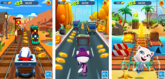 以会说话汤姆猫为ip,核心玩法就是操控着你喜欢的角色在不同的场景当中完成奔跑,躲避各类型障碍物,收集金币以及宝箱等一系列道具,玩家可操控很多无比经典的角色,比如安吉拉、汤姆猫,支持渐进式难度调节,因此不同玩家的个人实际喜好都能够得以满足,游戏具有多主题地图,场景涵盖地铁站,海滩等等,不同地图有独特的挑战机制。