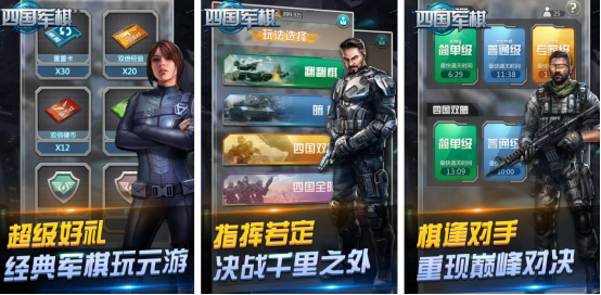 覆盖所有年龄段的人群,以策略军棋为主要核心,其中还有不同的创新玩法,比如真人联机或者是四国对战等等,就比如在四国军棋的玩法当中,可通过局域网联机或者蓝牙连接的方式相互较量,通过捕获对方军旗的方式,并将所有对方的棋子全部消灭,以此获胜,还有5个行营以及23个兵站等等不同的类型人物。更加注重的就是社交活动,可邀请好友共同组局来一场真人博弈。