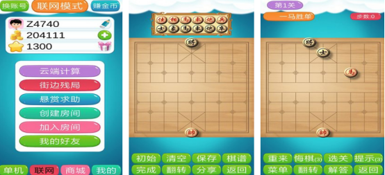 多种不同的模式任由大家选择,比如有人机对战或者是闯关挑战等等,还将我国传统的象棋文化刻画得淋漓尽致,也分为多个不同难度的等级,从菜鸟再到特级大师应有尽有,大家不光可和机器进行对战,其次还可建立自己的真实房间,邀请真实好友相互较量,来一场象棋的较量。