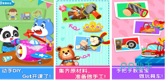 这款相当出色的宝宝巴士游戏,可制作各类型特色礼物,比如小熊即将过生日,该送对方怎样的生日礼物呢?玩家可以发挥你的想象力,将各类型物品进行加工还可以变废为宝,此游戏轻松满足小伙伴们的想象力,及其各种原材料来制作可爱又非常精致的手工,手把手帮助小朋友制作玩具车。
