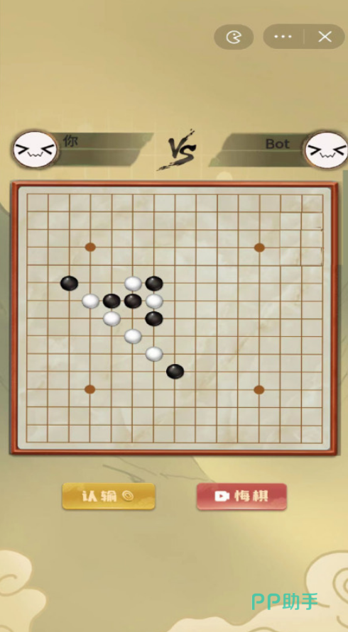 在进入游戏的过程中会有两个选项,玩家可以根据对方的具体战斗形式而选择合适的按钮进行点击,就可以获得相应的帮助。整个游戏画面设计的十分的简约,让玩家能够清晰的看到每一个棋子所下的位置,每一步棋的走向都会影响最终的结局,所以玩家要去考虑好整体的棋局,更好的下准每一步棋。