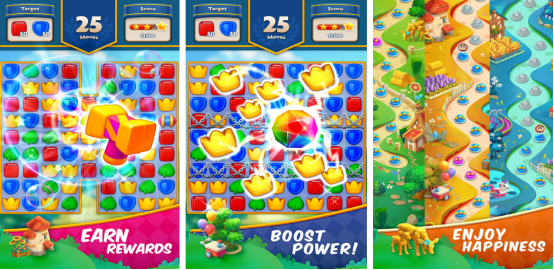 经典三消以及合成玩法巧妙碰撞,每个关卡都有具体的分数要求,比如只要分数达到1万分以后就可解锁更高难度的关卡,或者是需要消除特定的颜色物品。合理滑动屏幕就可将三个相同的物品寻找到,而且只要相邻的三个相同棋子。碰撞之后就可快速消除,还可看到满屏爽快的特效感,逐渐闯关将会获得无尽成就感。