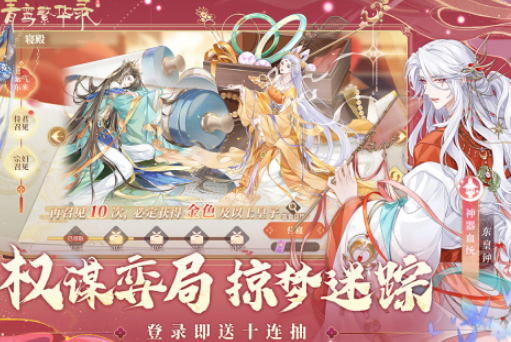 每个角色都有独特的故事背景和相应的性格特点,玩家的选择以及互动会影响游戏的整个进程,有大量主线剧情和支线故事,会面临多种命运抉择,影响国家走向以及不同的角色关系,采用全新的新国风美术风格,角色立绘高清又细腻,涵盖数10种不同的血统,每位都有专属剧情和独特的动态表现,打造出非常别致的浪漫氛围。另外又增加了决策收集与随机策略性玩法。