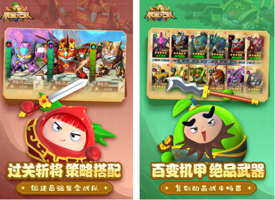 根据国产动画片果宝特攻,所打造的这款动作题材手游,不仅高度还原了大家熟悉可爱的3d机甲形象,也能加入到紧张刺激的格斗较量当中。有上百款机甲角色进行了高度还原,通过使用不同的战术配合以及战斗技能等,更可以战胜游戏当中的对手,也要不断的收集各种特攻角色,打造厉害的果宝战队,带来不一样的战斗体验。