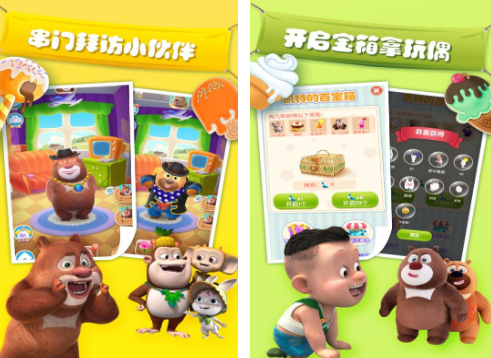 除了里面可以看到特别可爱的光头强形象,还有熊大熊二,属于休闲益智类型的手游,通过不断的培养角色,更能陪伴他们共同的成长,比如一起学画画,利用丰富多彩的画笔画出可爱的小动物,进行绘画,互动。除此之外,还融入了动画片当中的各种角色,包括光头强,甚至是吉吉国王等,支持串门拜访小伙伴们。