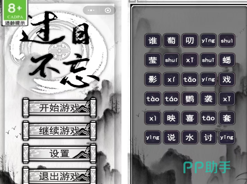 以大家比较熟悉的汉字,甚至是记忆力这方面的考验为主,通过在每次完成任务的过程当中,选择相同汉字或拼音完成消除的任务以后,就可以展现出自己过目不忘这方面的实力,要记住每个格子当中对应的汉字或者是所显示的拼音字母,通过正确点击文字和拼音保持一样的以后,来开始挑战。整体以简约的黑白画风为主,适合各个年龄段的玩家。