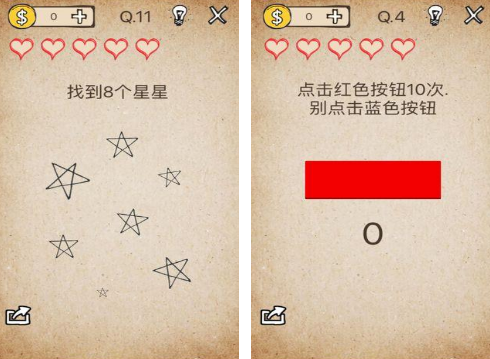 你喜欢需要发挥玩家的脑洞,才能完成游戏任务通过关卡的,不能只是相信题目字面的意思,而是要通过另类的思维以后,才可以顺利的过关。不仅属于单机,无需要网络的情况下都可以畅玩的,也是锻炼脑筋比较好的益智手游。涵盖丰富的操作模式以及任务挑战,要仔细的观察图片甚至是显示出的文字,结合自己的脑洞以后来挑战。