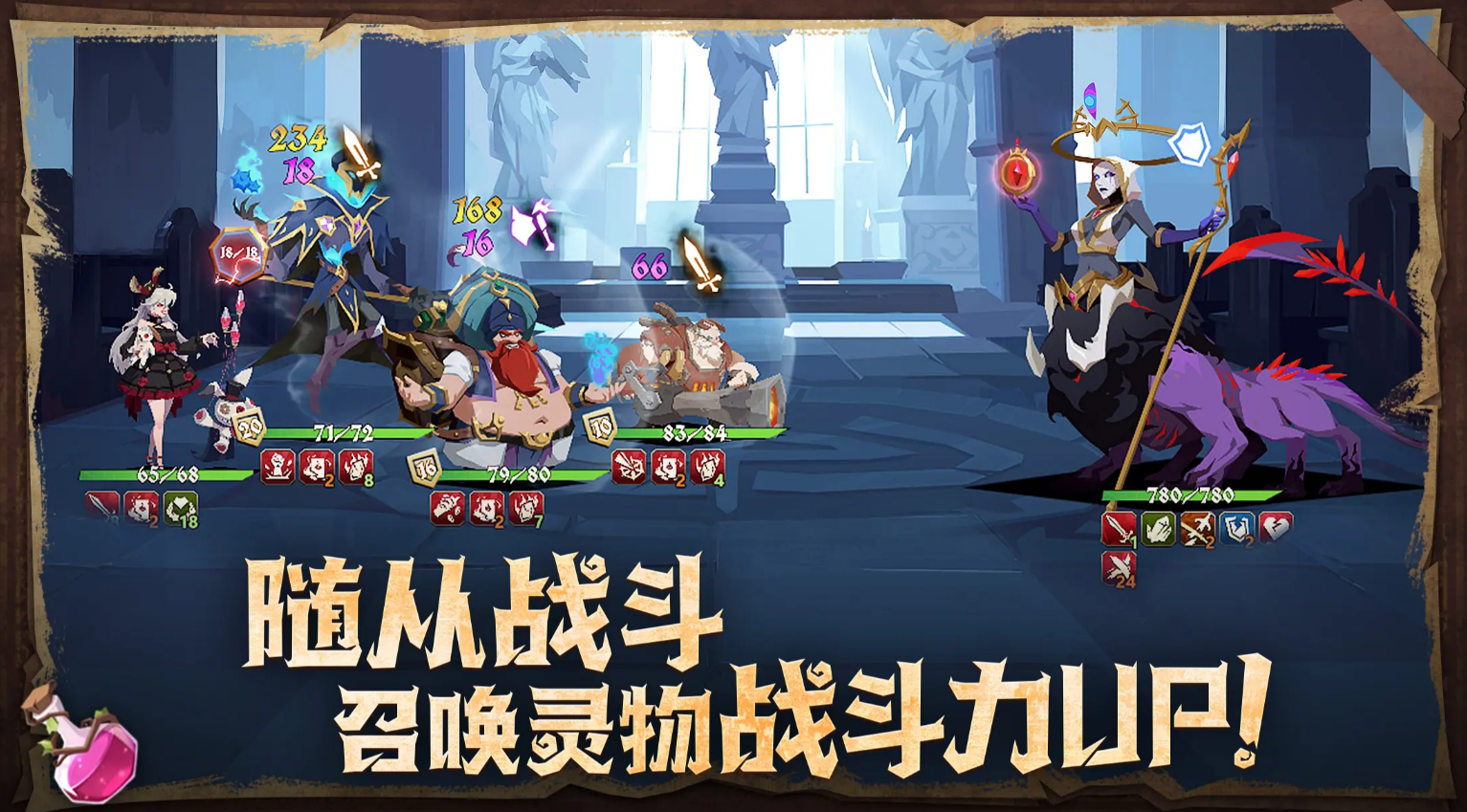 游戏里面加入了每回合限出卡的规则,所以玩家的每一次抉择都是非常重要的,一定要把控好整个战斗局面的内容,以及敌人的状态,才可以在合适的时机出击合适的卡牌英雄,这样才能够使整个局面对自己更加有利,卡牌的速度以及射程都非常影响战斗的结局,所以玩家一定要仔细的去分析每一场战斗,整个游戏的策略深度是非常高的。