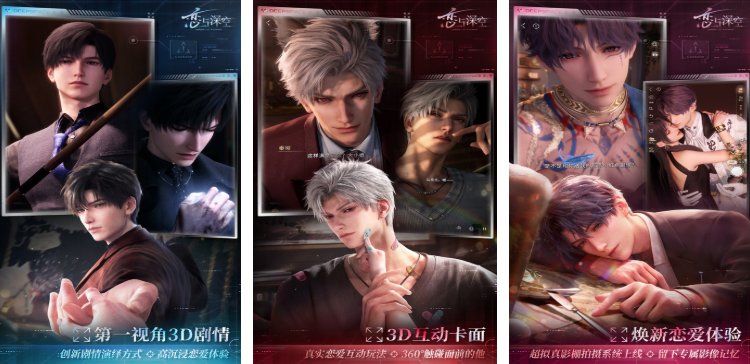 《恋与深空》是目前市面上唯一一款3d建模的恋爱类手游,手游以第一人称为视角,玩家家扮演深空猎人,与四位不同类型的男主并肩作战,探索宇宙奥秘。游戏拥有高沉浸式的恋爱互动模式,多感官的玩法设计,可以让玩家360度无死角的与男主角互动,无论是剧情还是画面都相当逼真。此外游戏内还有自由度超高的捏脸系统,玩家还可以自由选择妆容以及声线哦。