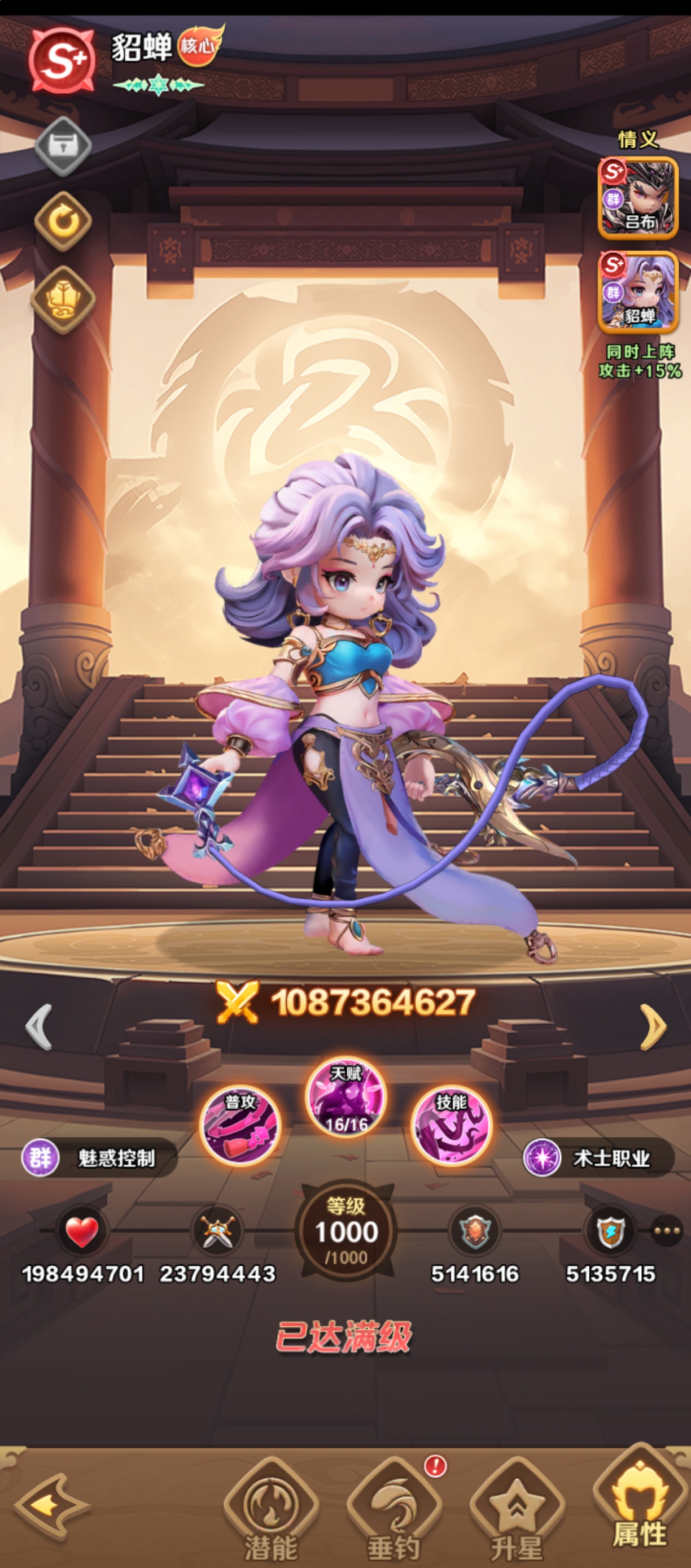 神貂蝉的普通攻击技能能够施加闭月的减伤效果,而他的主动技能魅惑能够控制三名敌人的目标。在战斗开始的时候,他可以直接施展技能,这样的话就能够实现5人控制。另外它还能够提供回怒跟增伤的作用作为神貂蝉,他其实是控制跟辅助的有效结合。