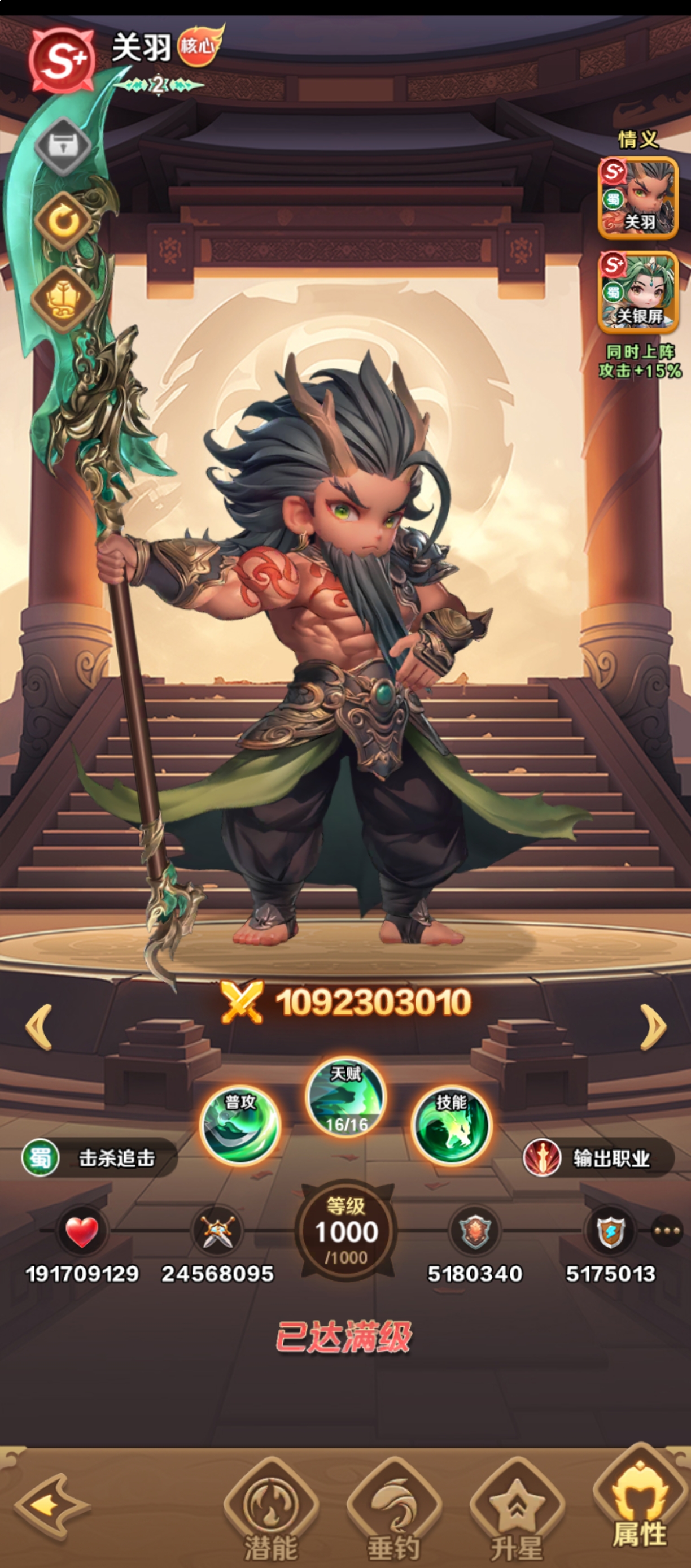 玩家可以尝试选择关羽,他其实作为高风险高回报的输出类型的角色,他的普通攻击技能跟主动技能可以借助血量的丢失来换取较好的伤害,一旦他的天赋技能得到培养之后,他其实还能够实现单体伤害,目前关羽作为蜀国阵容里面的核心输出是值得选择的。