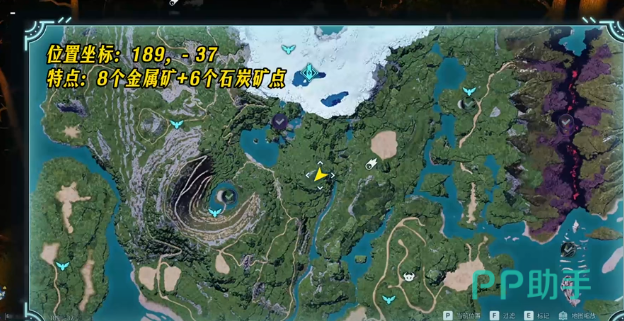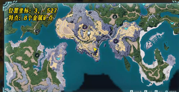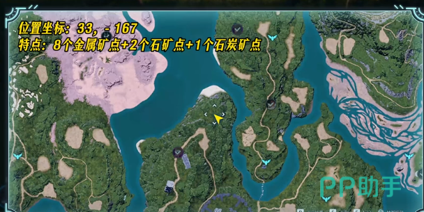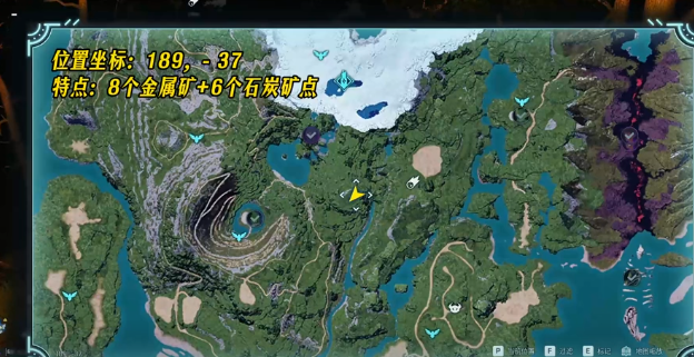 新手的核心需求就在于获取基础的石炭矿,还有基础金属。金黄色丘陵就是许多萌新的绝佳起点,这里就有8个金属矿点,可以满足前期的工具,还有设施的制作需求,附近还会有技能树以及两个通缉犯,方便玩家顺路去解锁技能,获取额外的奖励。另外一个值得选择的就是坐标33-167处,这里有8个金属矿点,两个石矿点,还有一个石炭矿点,简直就是资源宝库。旁边的技能树可以让玩家迅速的提升等级,而且这里的视野还是很不错的,可以远眺世界树。想要优先囤积石炭矿,可以选择坐标189-37区域,这里有8个金属矿,搭配6个石炭矿,拥有海量的资源,可以支撑前期基地的快速扩张。