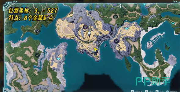 在进入到中期阶段,玩家就会面临水晶矿,还有硫磺矿的短缺,此时就需要把基地拓展到雪山,还有火山区域。雪山坐标215-250处,就有9个水晶矿点,还有一个金属矿点,可以补充水晶的缺口,边上还可以刷狂暴帕鲁稀有材料。雪山废弃遗迹,地势比较平坦,特别适合去搭建专用的孵化场,可以用来去培育高品质的帕鲁。火山区域则是硫磺矿的主要产地,坐标是在597-516的火山高塔传送阵的下面,这里就会有8个硫磺矿点,可以满足中期的火药道具制作需求。