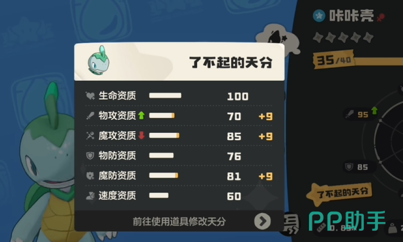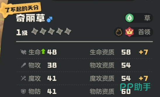 那么这二者之间的差距究竟如何呢?小伙伴们手中如果有同一只不同天分的精灵,那么你们就可以轻易的从他们的属性面板中看出来,了不起天分的精灵每项属性都是比相当好天分的精灵要高的,数值的话大约是在七到十点之间。并且精灵在升级和进化之后,属性等级都是会上涨的,而高天分的精灵上涨的数值也会比低天分精灵要更多一些,并且到了后期基本上是成倍的差距。