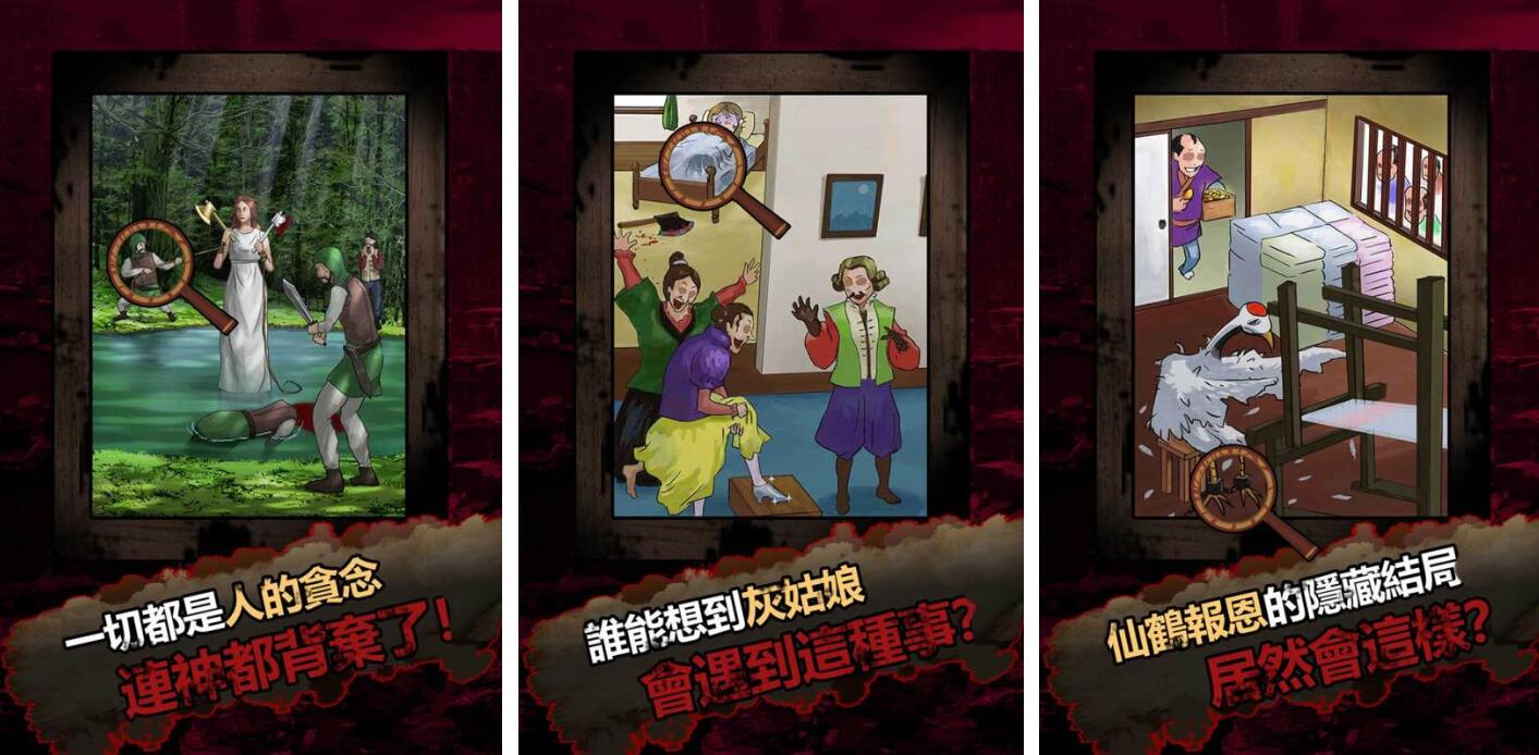 《恐怖黑童话》将大家所熟知的童话故事融入其中,但又进行了全新演绎,是一款暗黑风格十分浓郁的童话解谜闯关类手游。游戏将格林童话中的故事全部进行反转处理,将原本温馨的故事变成了黑暗版本,玩家需要在这些暗黑故事中寻找线索并成功逃脱。手游以深色为背景,搭配上离奇的画风和独特的背景音乐,营造出了恐怖且神秘的氛围。