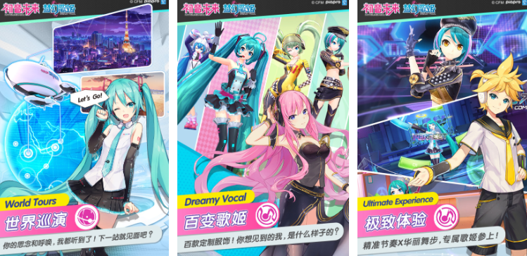 《初音未来:梦幻歌姬》是一款音乐类的手游,玩家可以通过按键的方式来完成对应曲目的演奏。游戏内共收录了上百种不同难度的歌曲,大家可以根据自身实力进行挑战,且每次挑战完成后还会有评分系统给出评价。当然,游戏内还为所有玩家提供了多种时尚造型,且这些造型都在演唱会上有加成效果!