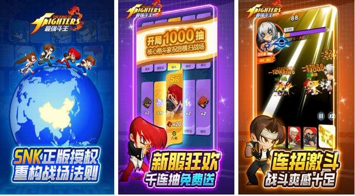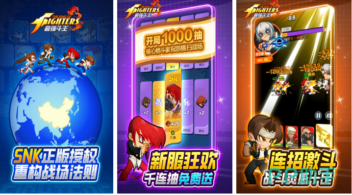 这是款由SNK授权开发的竖屏放置类拳皇主题网络游戏,超丰富的拳皇角色更新自由且造型塑造的极为呆萌,八神庵、大蛇等高人气拳皇格斗家可自由放置,开局就可以领取众多免费抽奖福利获得强化道具,特色鲜明的放置战斗系统颠覆了大家对拳皇的印象,特效塑造满分也有着重构的战场法则。