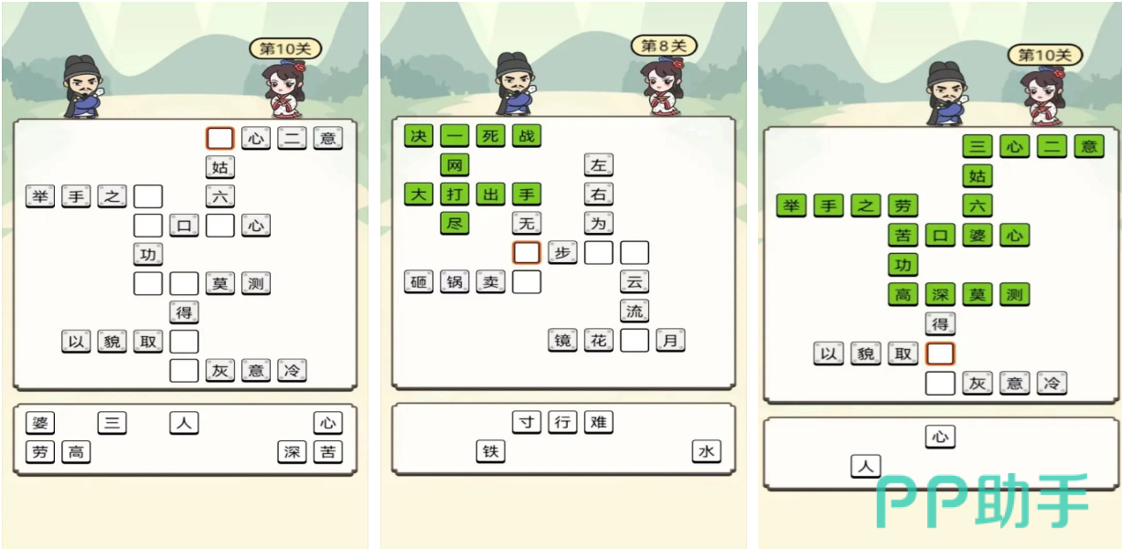 这款花式的成语接龙解谜类游戏适合给小朋友们打发时间,主要内容就是填写汉字尝试破解成语关卡,游戏画面简单并且关卡的塑造也是超级多样的,汉字与成语之间的结合助力小朋友们了解更多知识,画面简单也有着一目了然的游戏规则,花样繁多的成语加持也会充实小朋友的成语知识储备。