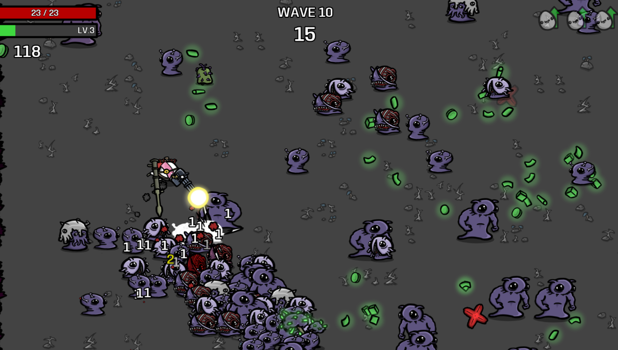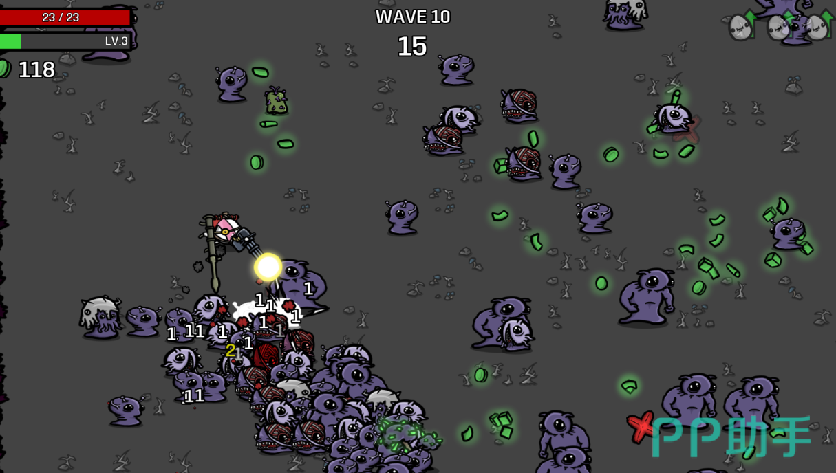 土豆兄弟这款硬核刺激的肉鸽游戏是从PC平台上完美移植的,整体画面塑造科幻而且土豆人的造型超级呆萌,辨识度还是很高的但是地形塑造的比较单一,玩家要扮演小土豆跟满屏抽象的小怪物一起战斗,绿色能量也可以提升土豆兄弟的等级,每次升级都可解锁一种肉鸽卡片完成属性上的升级。