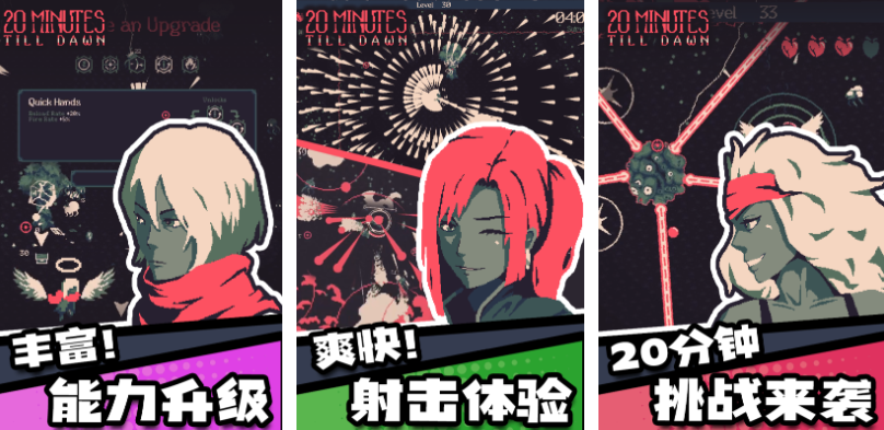 黎明前20分钟这款肉鸽割草游戏在移动端名气很大,凭借张弛有度的暗色调美术跟简化操作深入人心,一共有着20分钟的挑战时间能快速感受割草游戏魅力,多样的能力升级设定也符合肉鸽游戏的特色,射击割草的战斗理念也满足肉鸽游戏粉丝的需求,这款画风抽象也弥漫着暗黑风格的肉鸽佳作值得尝试。