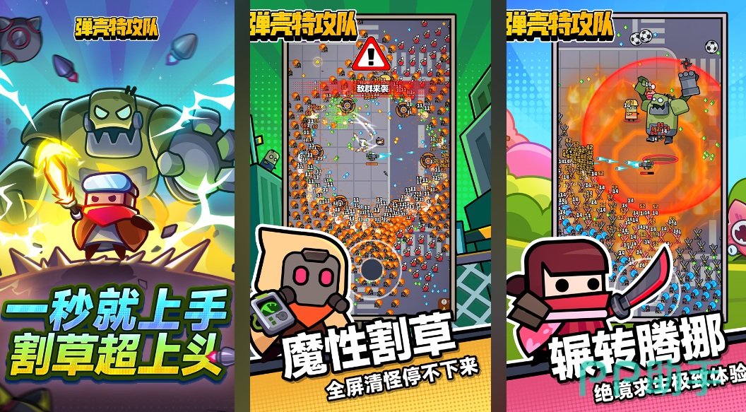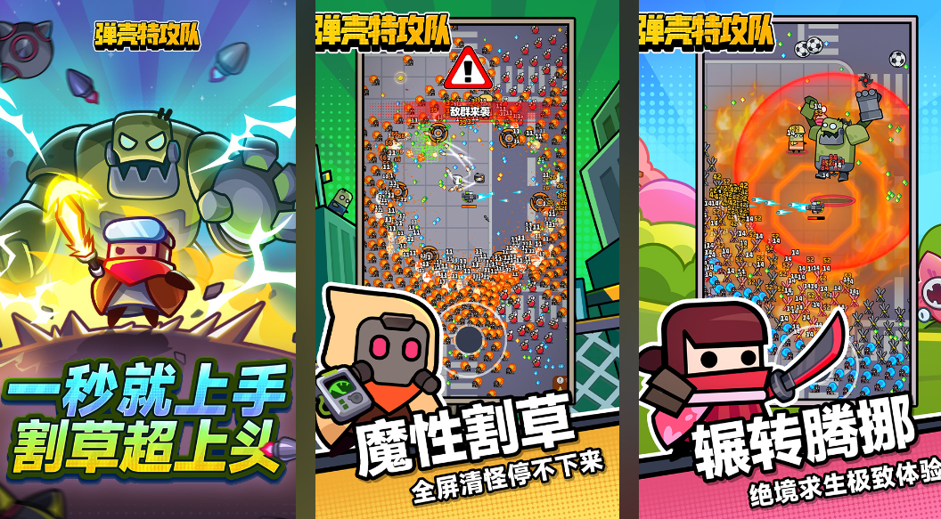 弹壳特攻队是名气很大的一款超级解压竖屏割草肉鸽游戏,本作为玩家完美简化了操作体系能够一秒掌握,超级上头的割草战斗机制无疑提升了解压感,满屏幕怪物带来的压迫感与割草体验都是一绝,游戏节奏很慢可以进行十五分钟的割草冒险,敌人BOSS刷新也是随机的足以提供更强的新鲜感。