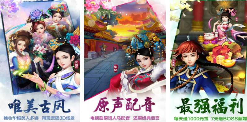 爱看宫斗古装剧的朋友一定要尝试下后宫甄嬛传,这是根据甄嬛传剧情为蓝本打造的唯美古装游戏,古风的地图配以后宫题材的背景代入感拉满,还设有特殊的原生配音效果显得如临其境,超多的福利奖励帮助大家尽情养成主角甄嬛,还为游戏角色设定了多套古代的服装配饰可以随心切换,唯美展现的3D宫廷背景代入感拉满。