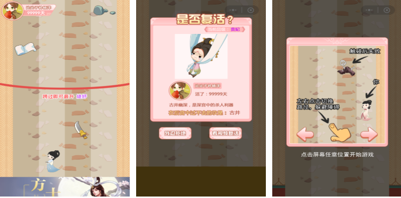 后宫求生之路是款带有无厘头剧情的后宫题材闯关手游,各种各样的闯关模式颠覆了大家对宫廷手游的认知,可以操控可爱的妃子在不同路线上执行任务,超有代入感的游戏节奏和小清新UI都是亮点,场景刻画跟音效方面都展现的极为复古,身临其境来到后宫地图尝试求生闯关乐趣十足,各类宫斗剧主题的剧情加持更为游戏增色不少。