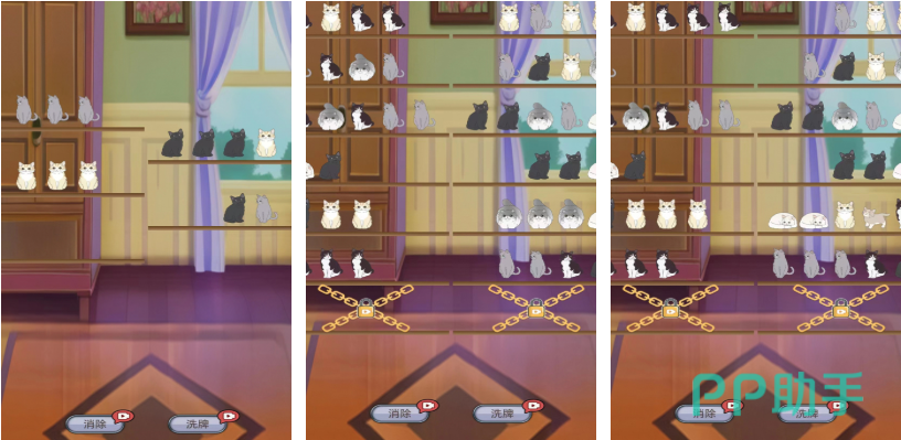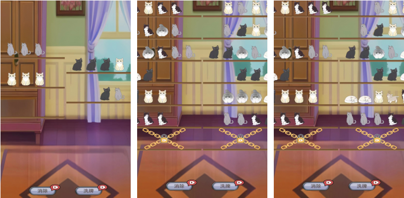 这是款比较有新意的填空+三消类的猫猫主题游戏,大家要试着不断切换小猫猫的位置让空白区域填满,三个花色一样的小猫相互靠近就可以进行消除,这种三消主题的玩法配以小猫的元素可爱到爆,关卡难度不高提供的通关快感也相对不错,各种有意思的小猫主题互动任务无疑是猫奴的最爱,各种花色的猫猫会呈现出各种姿态看上去憨态可掬,铲屎官们赶紧尝试排列这些小猫咪完成消除任务吧。