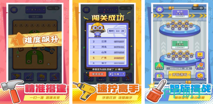 这是款将打螺丝玩法和解谜关卡进行结合的休闲解压游戏,可以轻松点击屏幕上的螺丝钉将其拧下来,精准的操作流程和解压的游戏氛围都是亮点,益智好玩的闯关设定吸引了更多休闲游戏粉丝,还有多人比拼拧螺丝的游戏任务可以完成,画面塑造唯美清新再结合解压的气氛刻画更受玩家们喜欢。