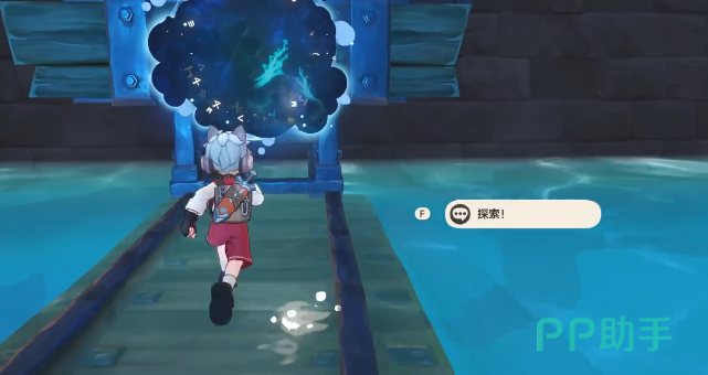 进入下水道后,需随水流方向游动。在右侧通道附近可见一片草地,此处固定刷新一枚果冻之蛋。拾取后向右继续游进,抵达尽头位置点击互动,角色将被传送至另一段下水道空间。传送完成后,请立即转向右侧通道前进。