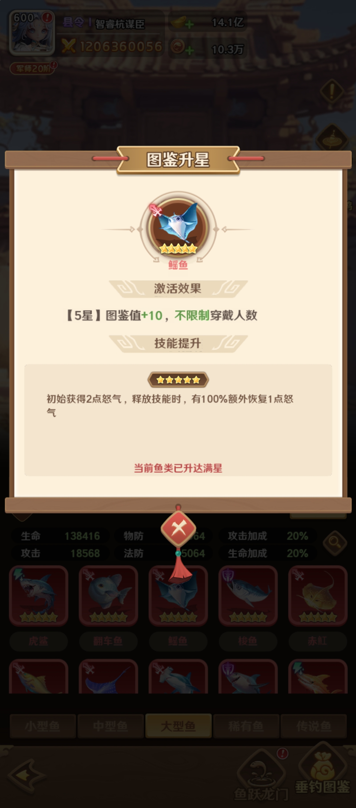 鳐鱼则是优化周瑜技能循环的关键选择。其核心效果为提升怒气恢复效率,确保周瑜在每回合均可稳定释放技能,实现灼烧叠加、控场衔接与节奏掌控三重目标。该鱼类适配性强,不仅适用于周瑜单核体系,亦可融入多灼烧联动阵容,有效缓解怒气资源紧张问题,保障战术执行连贯性。