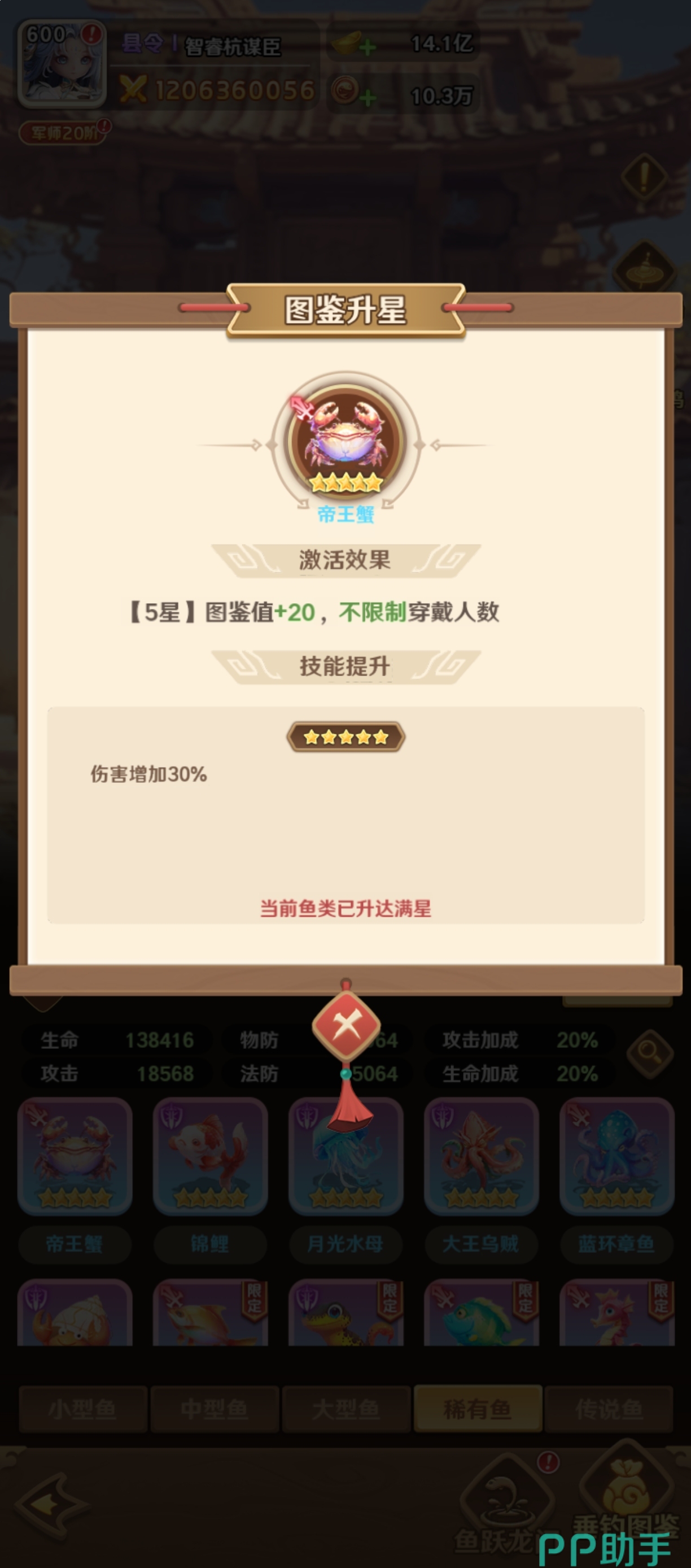 帝王蟹适用于基础伤害补强场景。当队伍缺乏其他增伤手段时,该鱼类可直接提升周瑜的基础攻击力,进而放大灼烧伤害计算基数。但需注意,其功能性定位弱于前述两类,通常作为过渡或补充方案使用,优先级低于鳕鱼与鳐鱼。