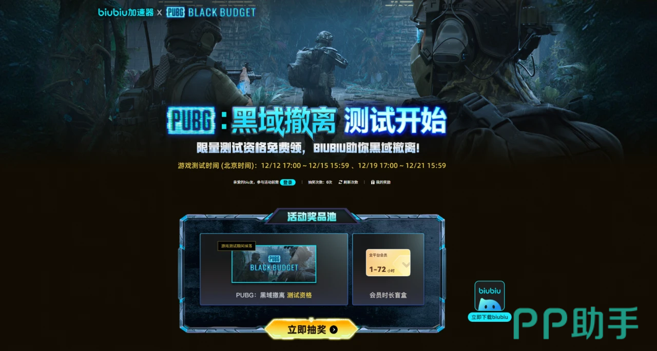 值得关注的是,该加速平台近期面向《PUBG黑域撤离》推出专项支持计划,用户完成指定任务即可参与免费测试资格抽取活动。