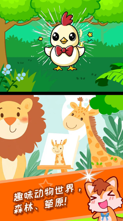 这款游戏同样把目光放在了低龄儿童身上,还为小朋友们打造了极易上手的操作模式,游戏中收录了多种不同种类的小动物供孩子体验。且每一个场景的设定都各具特色,不仅能让孩子感受到逼真的环境氛围,其清新治愈的卡通画风,也可以给孩子带来极其舒适的视觉感受。