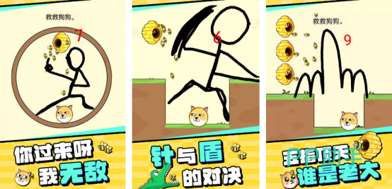 狗狗为主要的题材,其中有精心设计的海量关卡,每个关卡中的烧脑谜题都完全不同,而其中也会有一只特别可爱的狗狗等大家来成功营救,这些关卡的内容可能都不能按照常理出牌,比如大家通过划线的方式就能保护好狗狗,千万不要被蜜蜂蛰住,否则就会导致游戏失败。