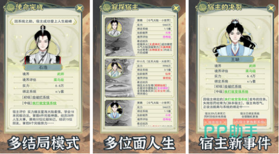 修仙题材为特色,模拟现实模拟人生,玩家可在这里自己抽取剧情,自己选择角色,具有高自由度,多角色模式,享受多位面人生,超多特色结局玩法,享受中国风所带来的无限欢乐,具体的故事走向和你的结局设定,全部都由你来选择,这样高自由度设定,真正做到千人千面。