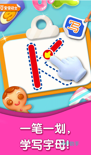 英语字母的大小写和书写的步骤,都用小朋友非常喜欢的卡通样子呈现出来。玩游戏的时候就可以跟着学,里面有字母编成的儿歌,还有色彩非常丰富的字母绘本,读起来非常有意思。还能可以加深记忆,搭配可爱的卡通人物和好看的场景。通过简单的互动,让小朋友会主动的去参与。在轻松的氛围里,慢慢的学到字母知识。既可以给小朋友们带来乐趣,又可以打好英文的基础。